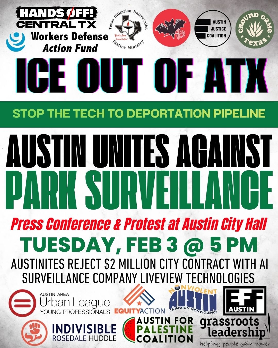 PS: The coalition has signed 13 organizations (as of Monday noon) onto an open letter condemning the LiveView Technologies contract. It will be presented to Austin City Council on Tuesday during the work session. View the letter and sign-on organizations here.