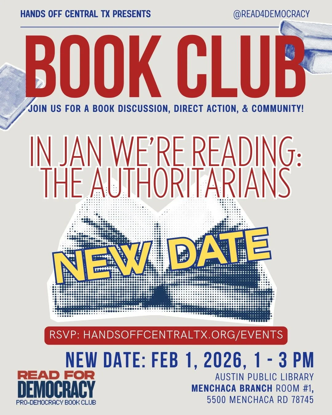 Join us for a group discussion about the book (and whatever else you want to talk about!) on Sunday, February 1, 2026 from 1 - 3 PM at the Menchaca Austin Public Library, Room 1.